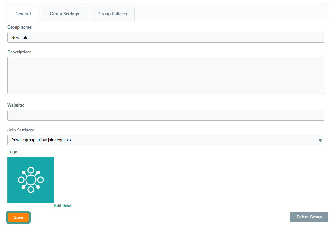 - Join settings – choose how you want others to join your lab (default setting is a private group which allows others to send requests to join the group)