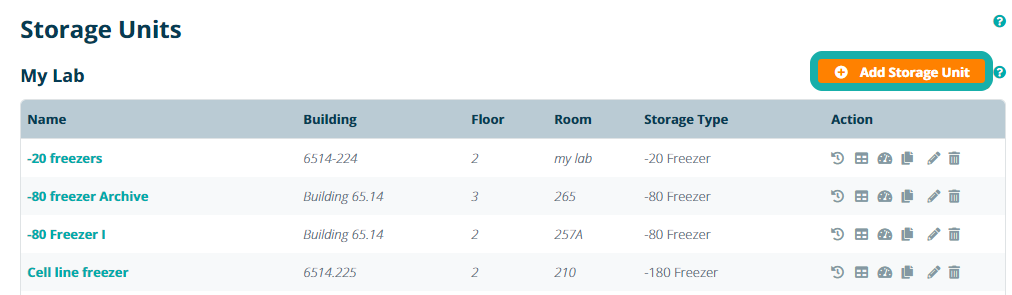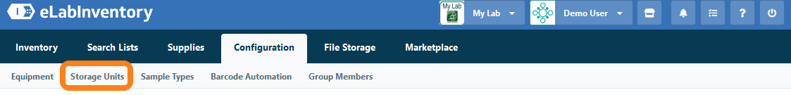 To add a storage unit to your lab, navigate to Storage Units under the Configuration tab and click the Add Storage Unit button.