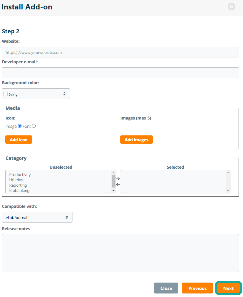 In the second step you can enter additional information for your add-on that will be displayed in the add-on details: