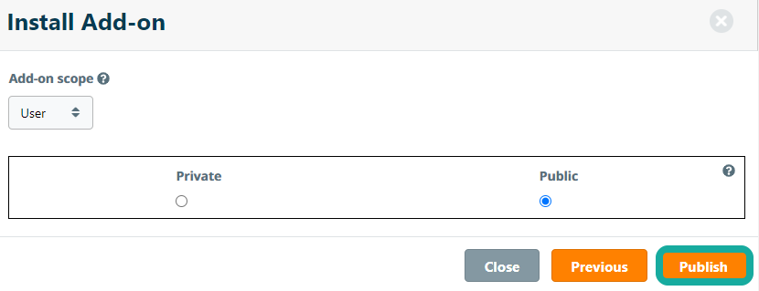 The chosen add-on scope also defines who can install and activate the add-on.