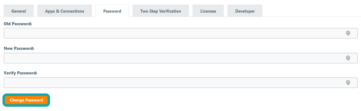 Change your password in the Account Settings under My Account. Note: if your organization uses single-sign-on (LDAP/AD/SSO) for user authentication, your password cannot be reset here because we do not store your credentials within the application. Please contact your local administrator for assistance with resetting your password.