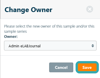 In the pop-up window, you can select the sample's new owner and click Save to confirm.