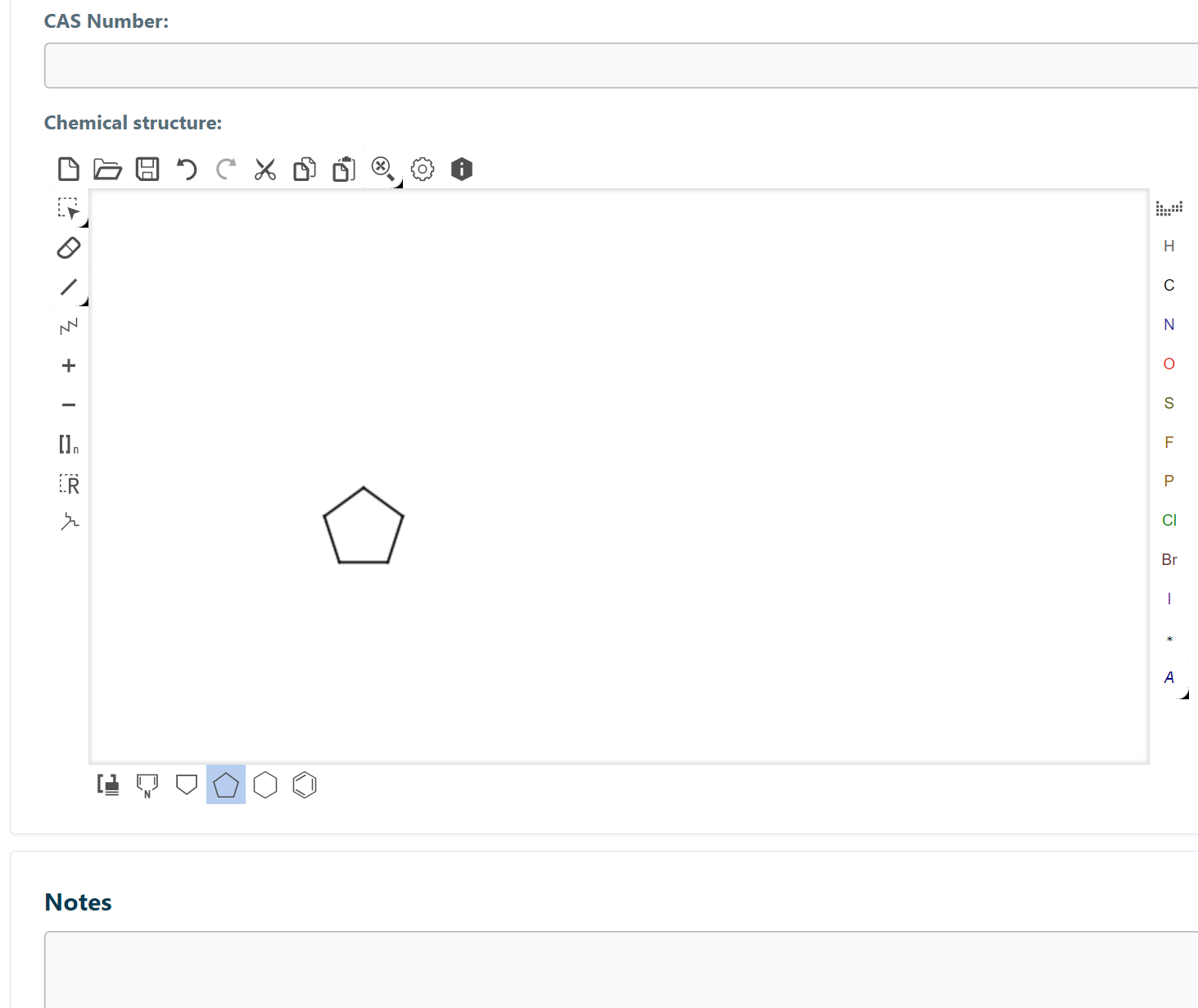 To draw a chemical structure, Edit the Sample. ChemAssist’s sketchpad is powered by the Marvin JS add-on; for more information on how to use MarvinJS, please refer to the MarvinJS User Guide.