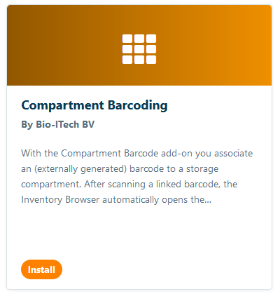 With the Compartment Barcode add-on you associate an custom barcode to a storage compartment. After scanning the linked barcode the inventory browser will open the compartment. You can install the free Compartment Barcoding add-on from our Marketplace.