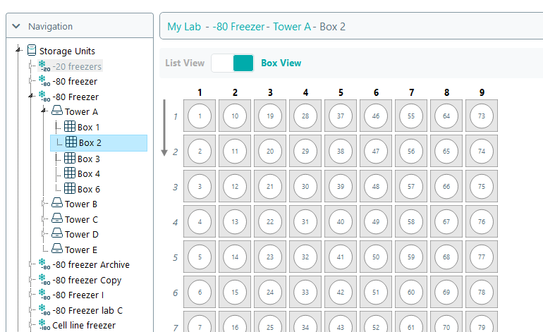 The orientation of a sample container can be changed to store samples in a box vertically rather than horizontally. When adding a sample series, cloning samples or a full sample series, importing samples or moving samples the vials will be added from top-to-bottom rather than from left-to-right. Note: updating a compartment's orientation is only possible when a box is empty.