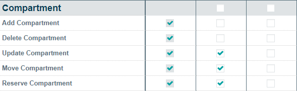 Navigate to Configuration – Permissions or to My Groups - Manage Permissions to change the rights of users to manage compartments in storage units. The following compartment permissions are supported: