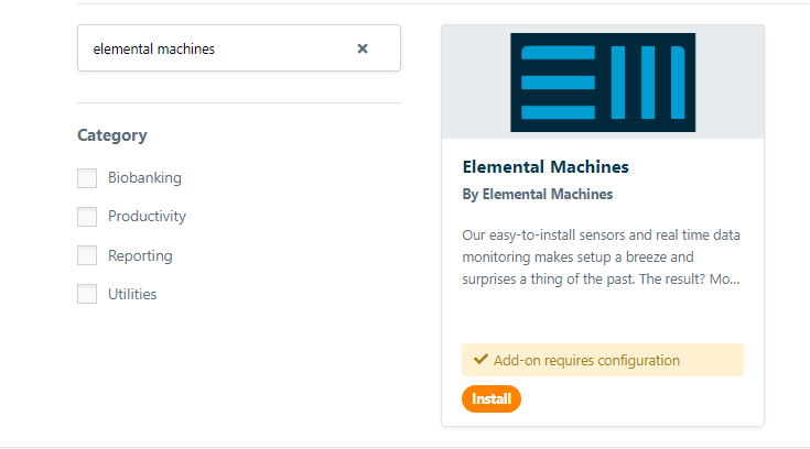 With Elemental Machines' easy-to-install sensors and real time data monitoring makes setup a breeze and surprises a thing of the past. The result? More discovery, fewer surprises. Elemental Machines empowers you to understand and optimize your lab environment by connecting disparate assets. Seamlessly integrate real-time instrument data with eLabInventory. Our integration allows you to access critical data about your equipment including temperature, humidity, light and air pressure, maintenance and calibration records, critical performance and utilization metrics, user workflows, machine health and utilization. Elemental Machines is the most flexible and easy to install monitoring system that gives you the piece of mind that your lab equipment is operating properly and lab work is being protected. Our systems combine easy to install monitoring devices and insightful details that help you understand the lab environment from anywhere. Our platform also assists with GxP compliance. NIST-traceable sensors, field calibration, audit reports and IQ/OQ procedures help pharma customers comply with Good Manufacturing Practices (GMP). Elemental Machines is working to support better science through the connection of humans, data and equipment.