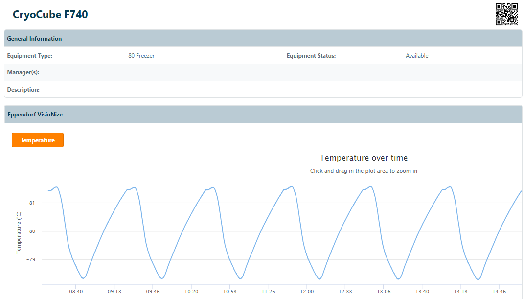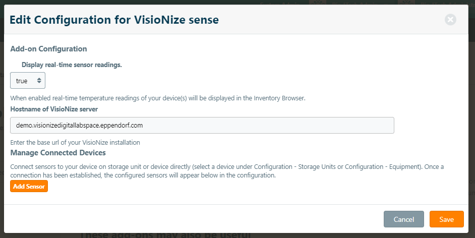 VisioNize Sense is an external sensor that offers a flexible way to visualize temperature data to monitor and protect the integrity of your samples. To enable real-time temperature of storage units and equipment with in eLabInventory, you can install the VisioNize Sense add-on from the Marketplace.