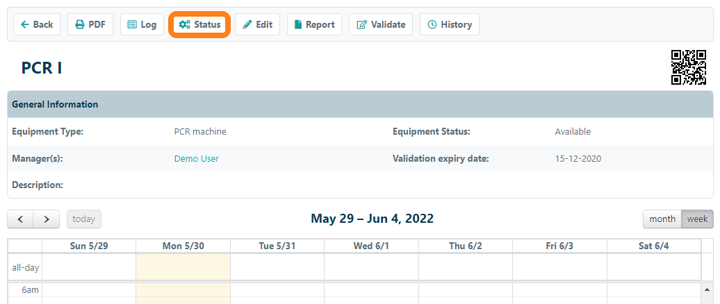 For Equipment with the status unavailable, no reservations can be made.