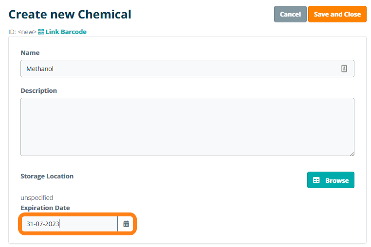 Once the Expiration Date field has been enabled, the option to set the expiration date is now present when adding a sample.