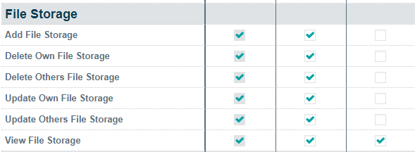 - Delete Other File Storage – required for deleting files uploaded by other users in the file storage