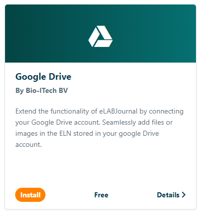 For integration of eLabInventory with Google Drive, you can install the Google Drive add-on from the Marketplace.