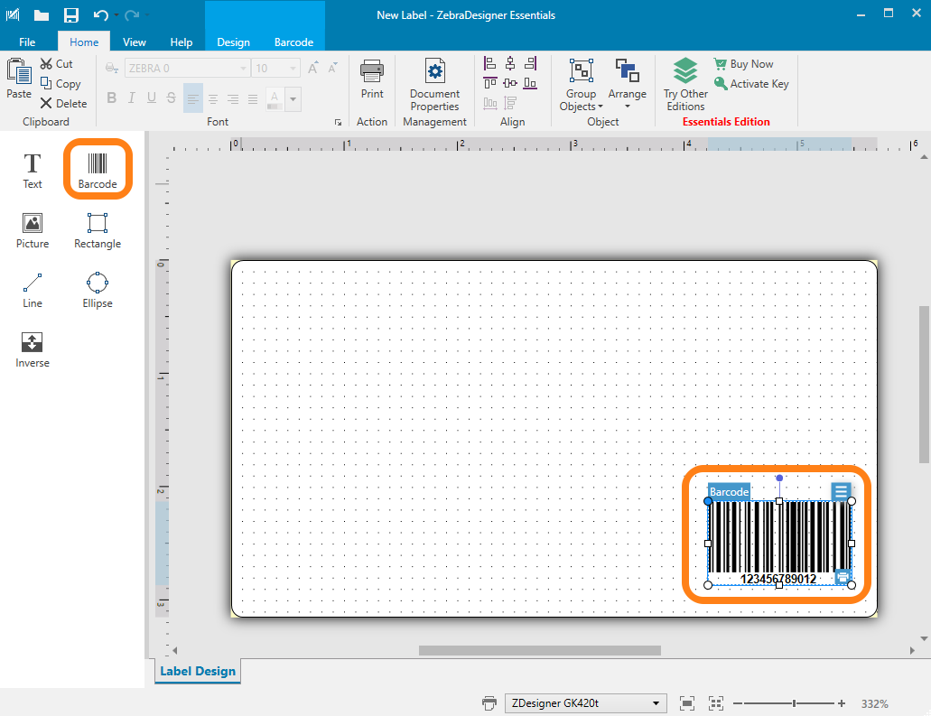 Now we have a text field on our label, click the menu button and go to Style make sure that Zebra 0 is set as font