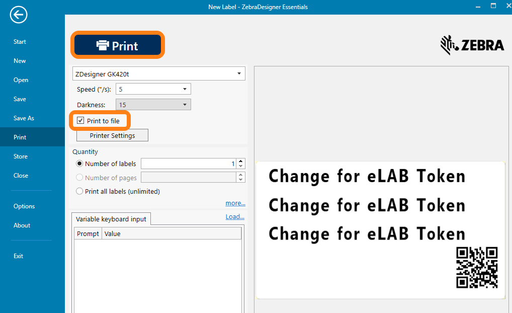 When you did not get a label template from your supplier follow these steps to make your label template for the Zebra printer. If you have a problem with the ZebraDesigner V3 software please contact Zebra support.