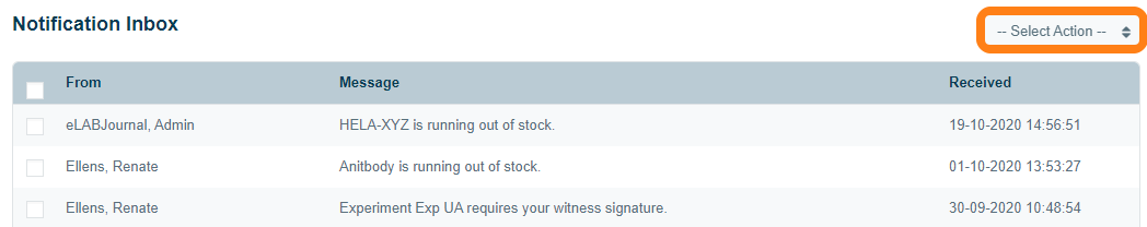 In the notifications inbox, you can select all messages to mark them as read or to delete them from your inbox. Note that only the 25 most recent notifications are displayed.