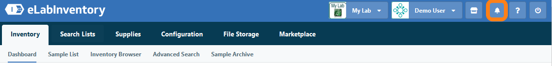 When a notification is sent, it appears as a small message in the lower-right corner of the eLabInventory application. Note that if you install the eLabInventory Mobile App, you will also be able to receive notifications on your smartphone or tablet.