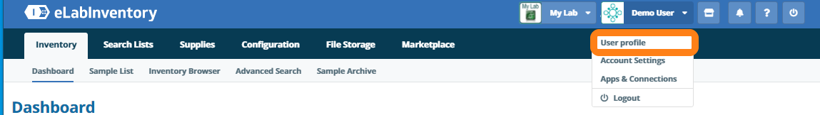 To update your display name within eLabInventory, open the Personal tab in My Profile. This is the name that will be record in all the logs within eLabInventory; however, it does not change the unique user identifier used to safeguard data traceability. Changing the display name does not affect your login information. Note: this option might not be available for you if your organisation has enforced the GDPR compliance system setting.