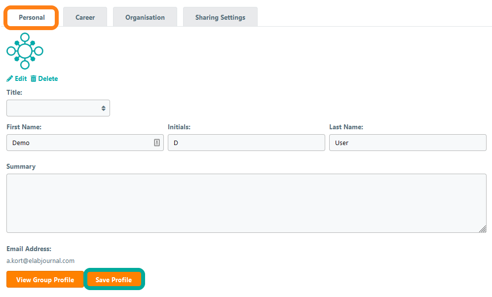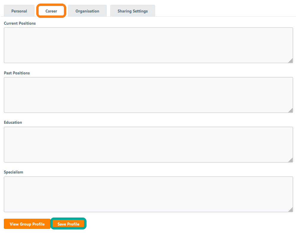 The fields that can be updated in the Career tab are listed below. After editing your career information, click Save Profile to save these changes.