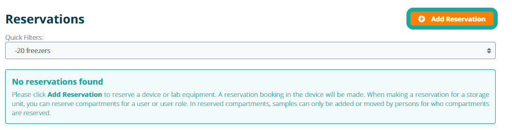 In the table all reservations for the selected storage unit are listed, displaying which compartment is reserved for a particular user. Click Add Reservation to reserve a compartment.