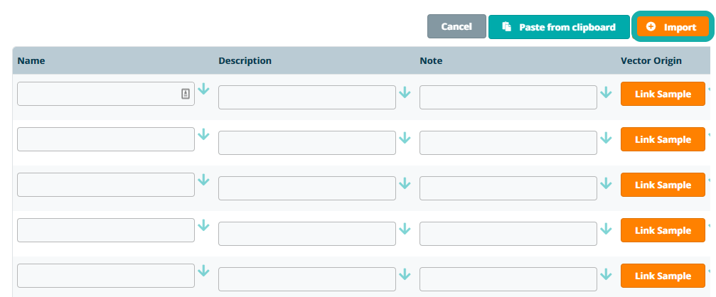 To import samples from an Excel spreadsheet or any other table-based format, you can install the free Sample Batch Import add-on in our Marketplace.