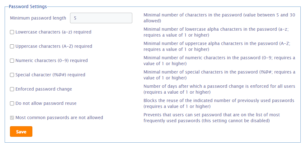 - Most common passwords not allowed - Blocks the option to choose a password that is on the list of most frequently used passwords