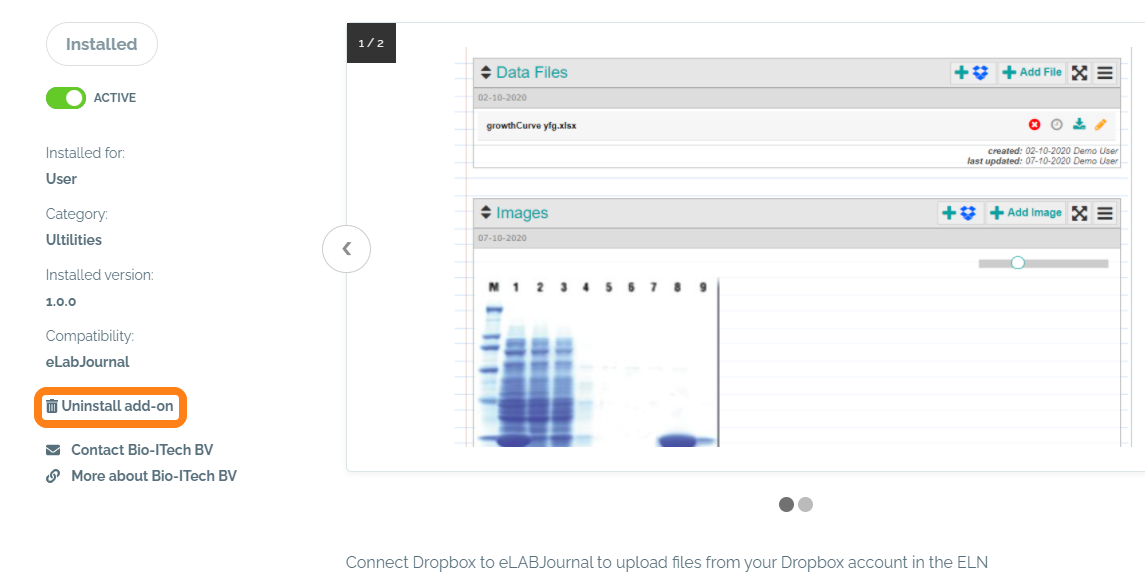 2) Uninstall - disables the add-on functionality and removes the add-on from your account