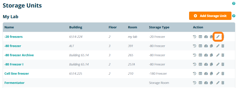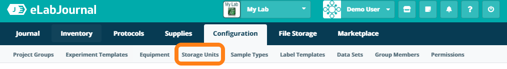 You can update the physical location of the storage unit or change the compartment configuration by navigating to Storage Units in Configuration.